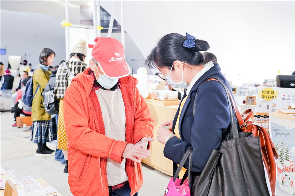 護理部社區護理組范姜玉珍護理長(右)陪伴學員參觀臺中國家歌劇院內的商店。
