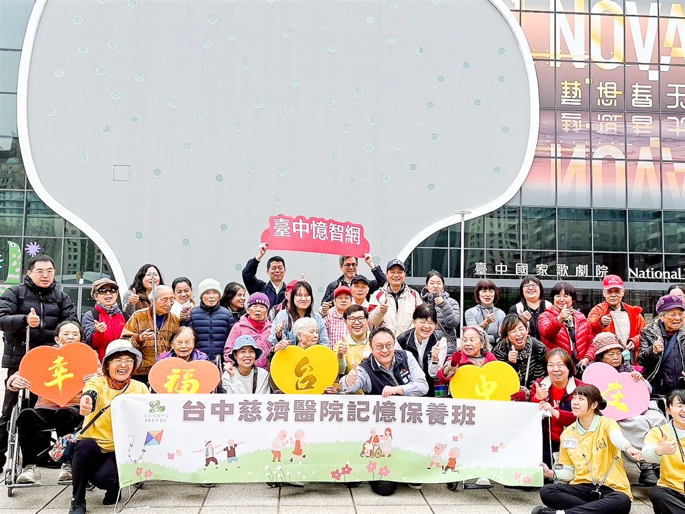 台中慈濟醫院社區健康中心投入失智照護成立記憶保養班已邁入第八年,至今服務超過一百一十個家庭。社區健康中心為擴大失智長輩社會參與,安排臺中國家歌劇院藝文之旅,醫師、護理師、醫技與行政同仁全程陪伴,讓長輩及家屬安心出遊、開心享樂。