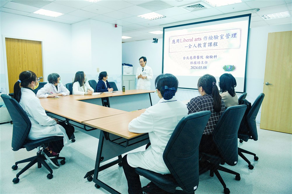 檢驗科林植培主任指出:「台北慈濟醫院甫升醫學中心,因此醫事教學引起許多醫院的關注,希望來院了解教學特色以及從區域醫院升格的努力過程。由於血庫在中小型醫院中是以人工作業為主,因此檢驗科也特別編制教材,希望能夠在有限的時間內滿足學員需求。」林主任提到,台北慈濟醫院檢驗科的教學特色包括設有專門教學的負責人、一對一的小班教學、結合科技的VR(虛擬實境)教學以及全人教育,教學團隊也會從每次課程結束後的學生回饋中檢視是否要調整教學方式,讓未來的學生有更多成長。