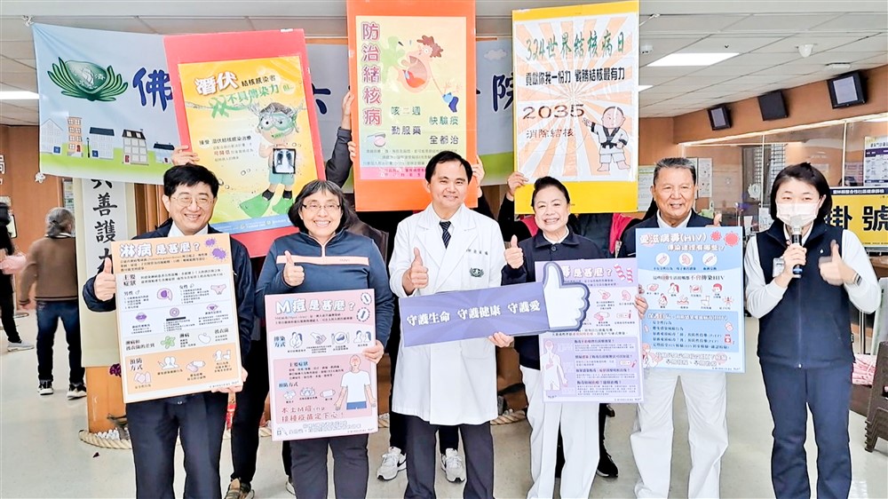 斗六慈院今年承擔兩場雲林縣整合性社區健康篩檢,首場吸引近三百位民眾參與。左三為斗六慈院簡瑞騰院長,左一為大林慈院林名男副院長。