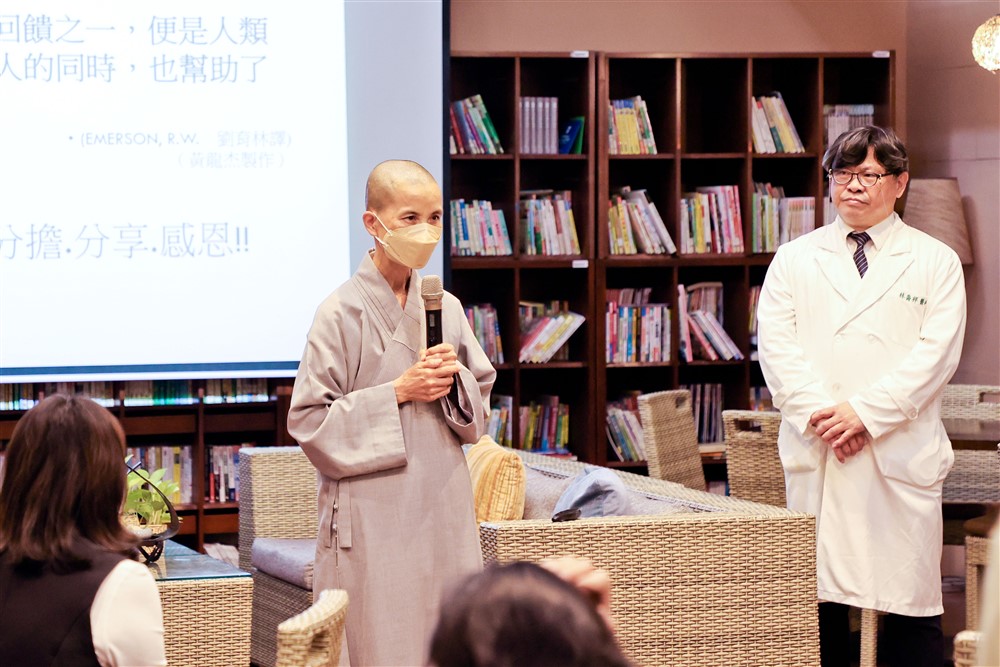 林喬祥主任也鼓勵太魯閣晶英員工抒發心情。「碰到了,就是去面對,講起來很容易,但做起來真的很不容易。」張小姐回想當時的情景,內心依然波動。她表示在講座上看到很多同事一起參加這講座,很開心,也收到很多鼓勵,很感恩慈濟基金會與花蓮慈院醫療團隊的支持。