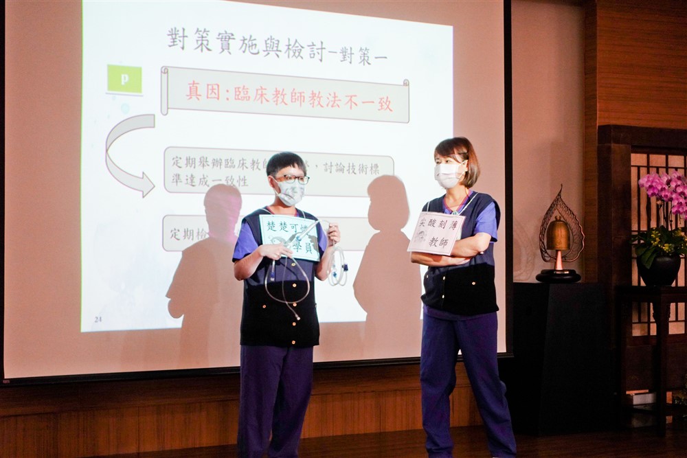 李政修總經理逐一提出修正意見,「團隊成員共同參與改善,相較於方法學來得更為重要。」李總經理鼓勵用既有的指標性管理系統,較能自主掌握常規,再次深入改善,必能成為重要的傳承資產。新冠疫情前,趙正芬副院長曾數次擔任台中慈院TQM 評審,她體恤護理人員文書工作繁雜,尤其改善延遲下班率,除兼顧好品質,簡化護理工作流程勢在必行,關於新人或操作教學部分,護理人員應專注照護病人,教材影片或文宣等製作可留給專門單位處理,減少護理師工作負擔。
