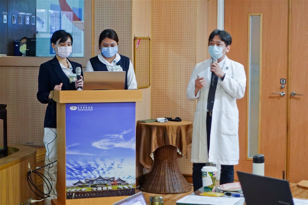 「三守圈」胸腔內科陳立修醫師(右一),肯定推動品管圈帶來的效益。