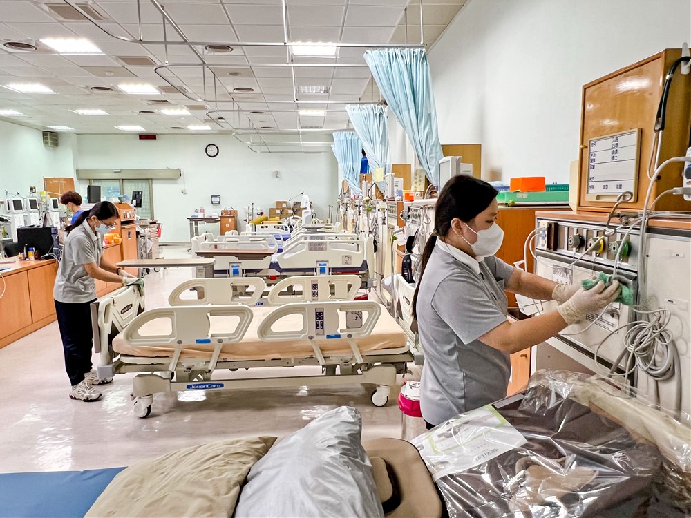 浩蕩長的隊伍分作二十六組,用心清潔醫院任何角落,全力為評鑑加分。全家總動員的潘璿晴護理長分享,手術室是醫院重地,最怕就是有落塵,所以要整個仔仔細細,甚至是看不到的櫃體後方都要擦。