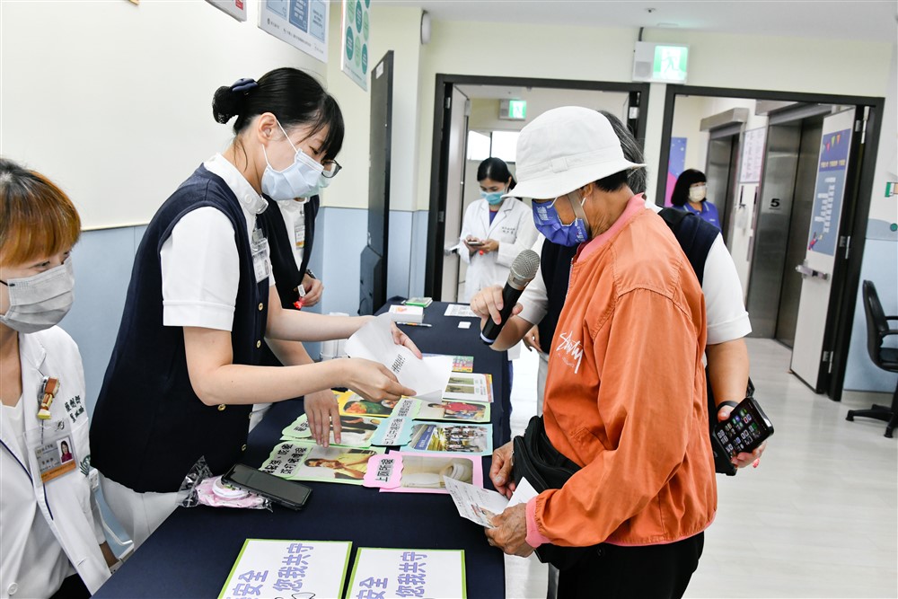 剪綵活動結束後,簡瑞騰院長親自與同仁演出短劇宣導病人安全。短劇中病人阿春就醫時對自己的病情說不清楚,東扯西扯說不到重點,在醫師提醒下,清楚說明自己不舒服的部位、症狀、不舒服的時間等,有疑慮會主動詢問,會大聲說出自己的想法,還會使用健康存摺APP,可以查詢就醫記錄及用藥,讓醫師根據病人的情況開立合適的用藥,幫助病人早日康復。活動現場還設有打卡、感染管制、用藥安全等闖關攤位,邀請民眾一起來關心病人安全問題。(文、攝影/黃小娟)