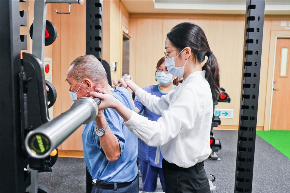 復健醫學部主任蔡森蔚表示,骨肌訓練中心結合老人醫學、復健和中西醫療觀點輔助,包含肌少症防治、脊椎健康管理、體態矯正等,由專業團隊做整體生理評估,擬定適合的訓練計畫,提高鍛鍊和照護效益。蔡主任補充,尤其中醫介入能補助調理腸胃、針灸促進肌肉合成與修復,維持骨關節健康並改善訓練過程的不舒適。
