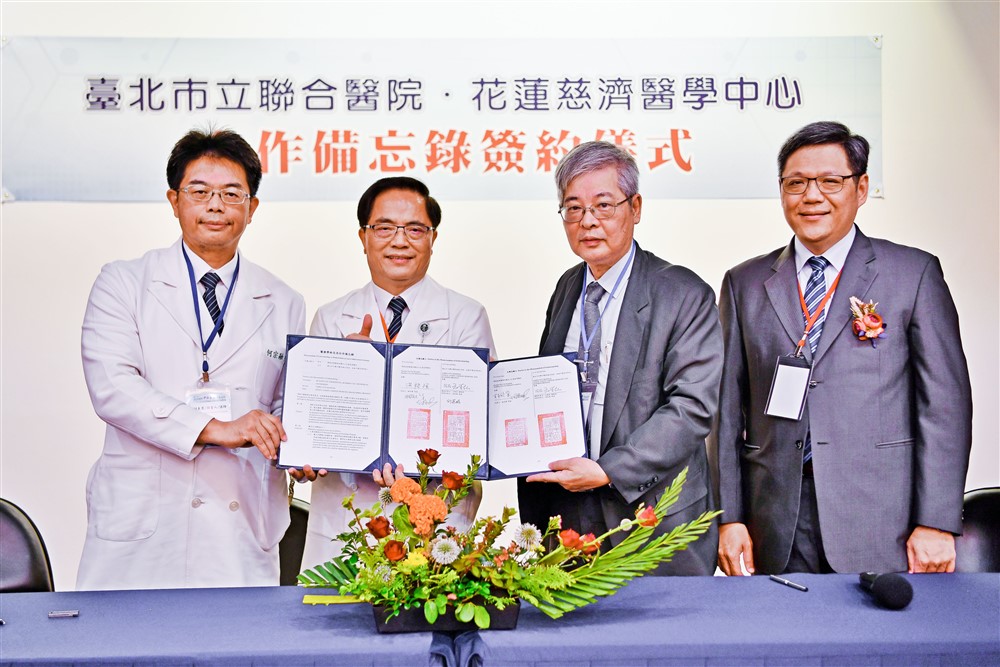 左起為花蓮慈院何宗融副院長、林欣榮院長、臺北市立聯合醫院林森中醫昆明院區院長洪裕強、副院長邱榮鵬,代表簽訂合作協議。攝影/廖文聰