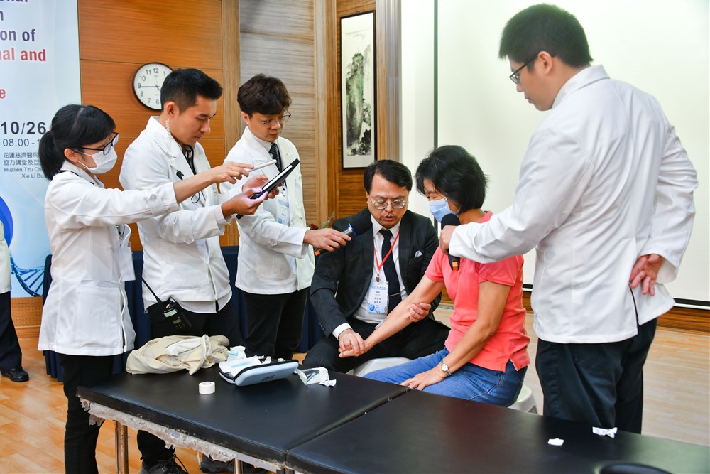 亞大醫院副院長周立偉教授示範「浮針療法治療患肌之臨床應用」,花蓮慈院中醫部針灸科主任林郁甯主持。周立偉副院長是復健科醫師也是中醫師,在腦中風、腦部外傷、及脊髓損傷後復健,以及疼痛治療上有豐富經驗,特別是浮針療法醫術精湛。花蓮慈院護理部主任鍾惠君、督導蘇芬蘭與護理師林庭薇以臨床上「以經絡循環行助病人照護」分享中西醫整合全人護理,由慈大學士後護理系主任張美娟主持。