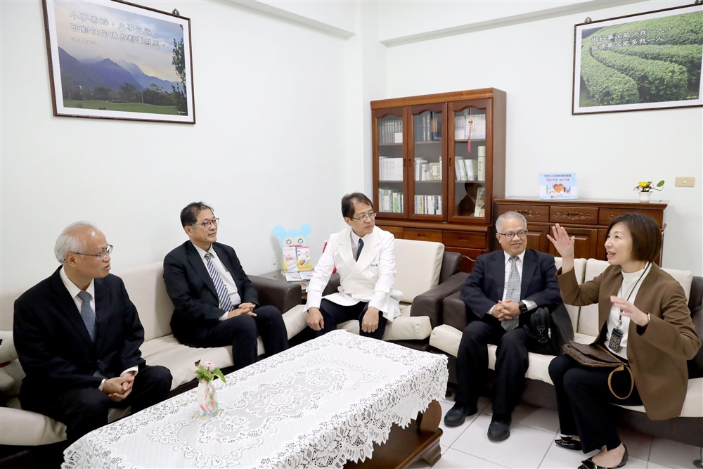 柯宜汾檢察長(右一)感恩關山慈院對據點的支持和用心布置。左起為張斗輝董事長、鄭銘謙法務部長、潘永謙院長、洪培根檢察長。