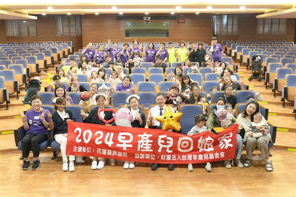 花蓮慈濟醫院小兒部與護理部在十一月九日舉辦早產兒回娘家活動。透過親子製作海浪鼓、闖關遊戲、紅鼻子叔叔說唱等團康,一起觀察孩子的身心發展。小兒部朱紹盈醫師與兒童牙科李嘉諭醫師分享親子閱讀、幼兒牙齒保健,希望帶給家長更多的知能;小兒部主任張宇勳以「成為小孩翅膀下的風」與家長共勉。