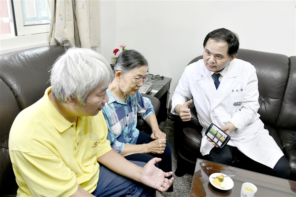 蔡爸爸目前身體狀況很不錯,他分享自己會坐客運轉火車到大林,再搭醫院接駁車,大老遠從北港到大林慈院看診,陪同的高金鳳師姊補充,雖然醫院有北港線交通車,但蔡爸爸不喜歡時間受限,都是「自由行」。