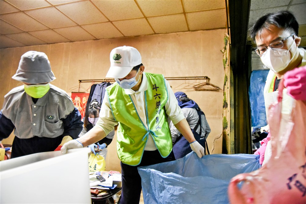 關懷戶的住家裡累積多年的雜物,案主都無力清掃,因此清掃過程,氣味難聞。慈濟志工王勝聰表示:「這次總共動員近百人前往打掃,進入案家須穿過長長的走道,走道邊是一間販賣牛仔褲的服飾店,案家室內無水可用,無法清洗物品,門口又沒地方擺放清潔物品,打掃過程大家須從外面提水進屋內,還須小心翼翼地以接龍方式傳遞汙物,深怕弄髒了販賣的衣物,人人以接力方式,清出一堆又一堆的垃圾。」非常感恩大家一起共創良善與祥和的社會。