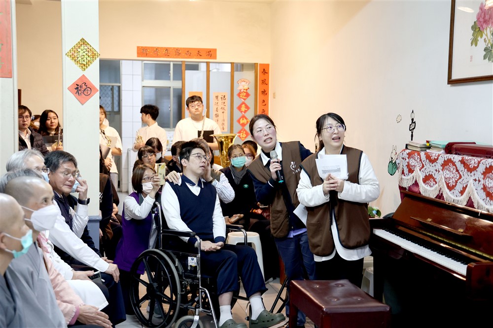 花蓮慈院心蓮團隊與志工為懿興舉辦圓夢音樂會,由安寧居家護理師蔡菁菁(右二)、安寧心理師譚湘綺(右一)主持串場。攝影/黃思齊