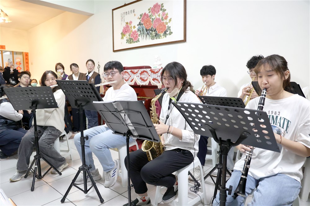 昔日慈濟科技大學管樂社團校友及現任社員前來探視老師,並在圓夢音樂會上演奏。