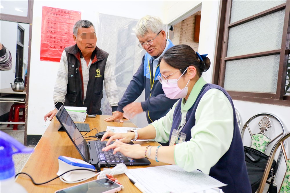 自內灣國小退休的古永源師兄(右二)幫忙醫療團隊招呼看診的居民。