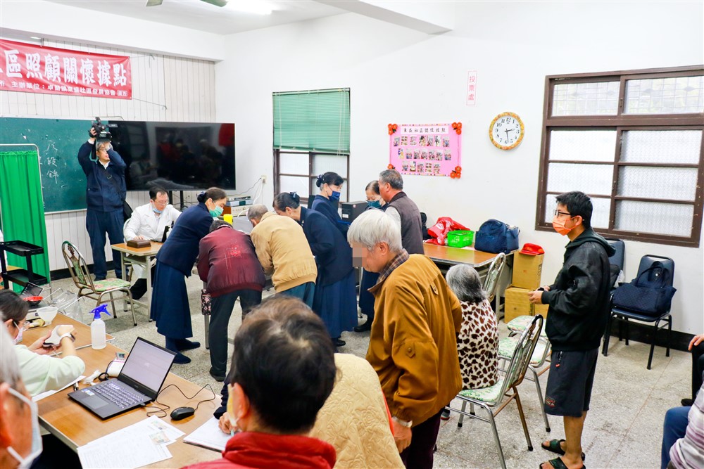 午後大雨不減東盛社區活動中心看診人潮,卓蘭鎮內灣里沒有中醫診所,看診必須外出耗費車程,因此有超過二十位居民把握巡迴醫療就近求診。古永源校長自內灣國小退休後擔任台中慈濟醫院交通車卓蘭線隨車志工,他了解農村有許多就診需求,推薦到卓蘭鎮設點,當天他特別到場熱情招呼鄉親。