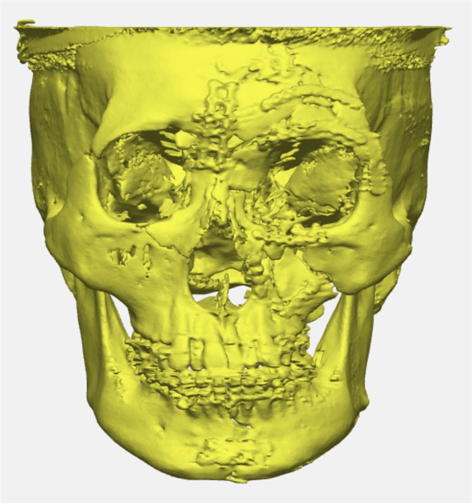 因為撞上卡車,黃先生的顏面嚴重創傷,除了雙側眼窩骨折使眼球組織往下掉,視力產生疊影外,額骨、上眼眶、顴骨、鼻骨、下顎骨均有碎裂。許博智主任向黃先生解釋:「眼窩斷裂使眼球組織向下掉,視力就會無法對焦,產生複視,若不盡快復位,以後外觀上看起來會像小白鯨一樣眼球外開,無法集中。」為了避免在病人臉上留下手術疤痕,許主任採掀頭皮的方式開刀,清理顱內發炎部位,再將破碎骨頭歸位,以骨釘固定。兩日後再由吳宗樵醫師透過鋼板及鋼釘將鎖骨固定。而後陳家輝醫師移除胃造廔口,回復由口進食。