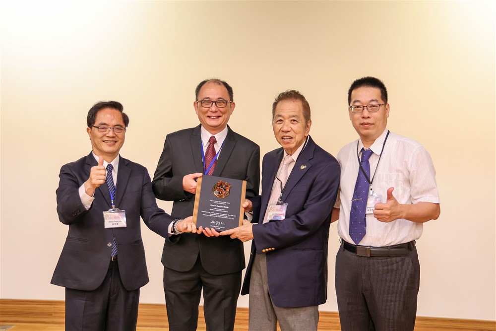 二○二五年PPSSC「細胞及癌症研究菁英獎」獲獎人為中研院農生中心林崇熙博士。左起為花蓮慈院林欣榮院長、林崇熙博士、長期贊助PPSSC 的史坦賽薾生醫科技創辦人蔣行與總經理林世吉。