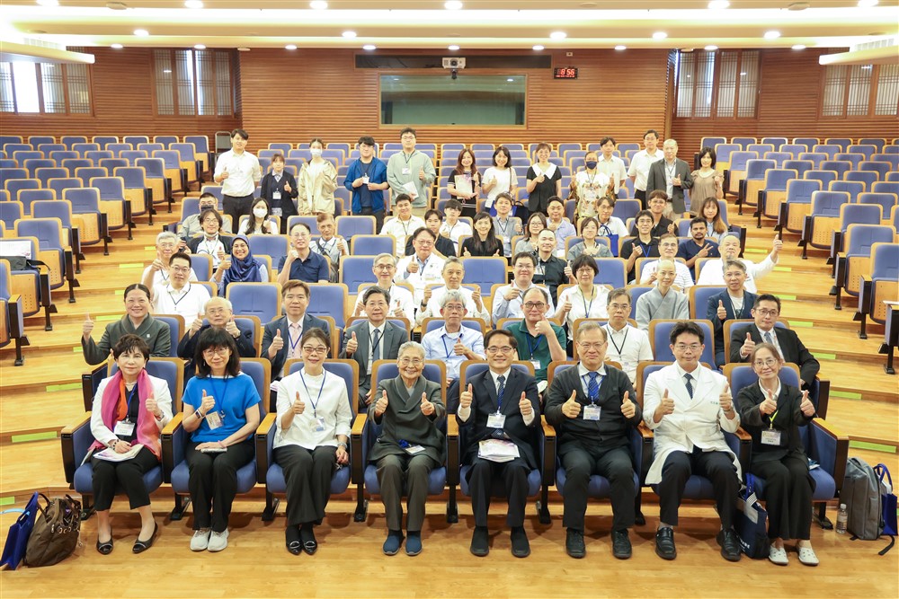 二○二五年第十七屆泛太平洋幹細胞及癌症研究研討會於五月二十四日在花蓮慈院舉辦,各專家學者齊聚一堂。前排左起日本醫學博士出澤真理、中央研究院生醫所陳儀莊所長、財團法人幹細胞及再生醫學教育基金會夏玉心執行長、慈濟基金會林碧玉副總執行長、花蓮慈院林欣榮院長、中研院江安世院士、花蓮慈院何宗融副院長、慈濟醫療法人創新研發中心劉靜安副研發長。