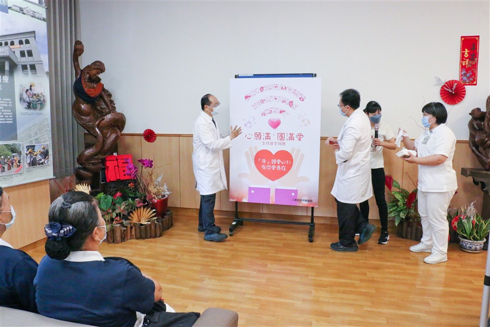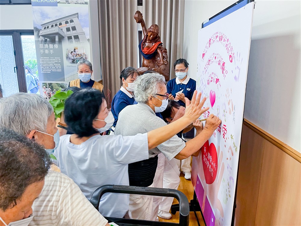 三義慈濟中醫醫院器官捐贈週活動啟動,邀請與會志工與民眾一起手印簽名響應。