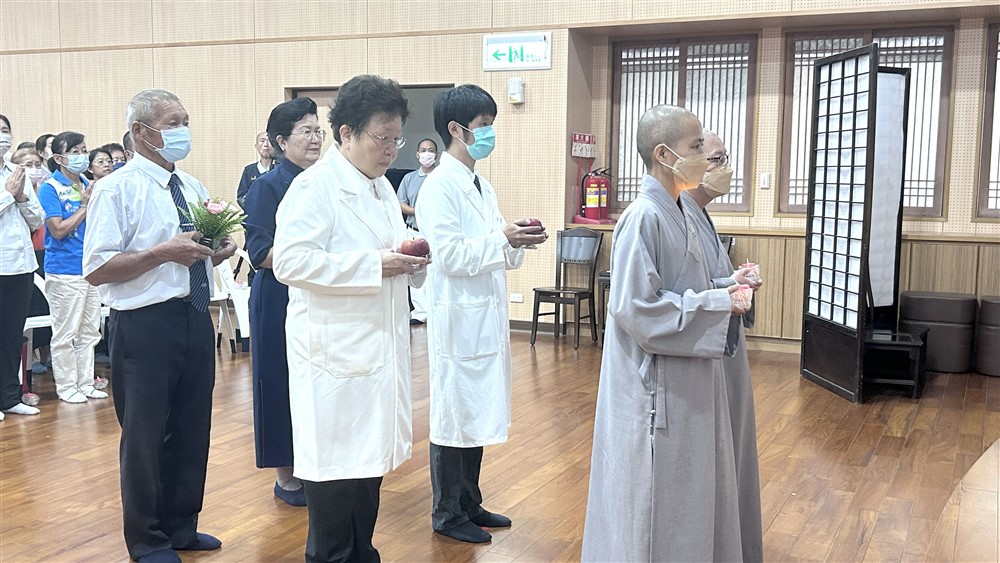 玉里慈濟醫院七月吉祥月祈福會,由花蓮靜思精舍德旭師父與德傑師父引領眾人虔誠祈福。