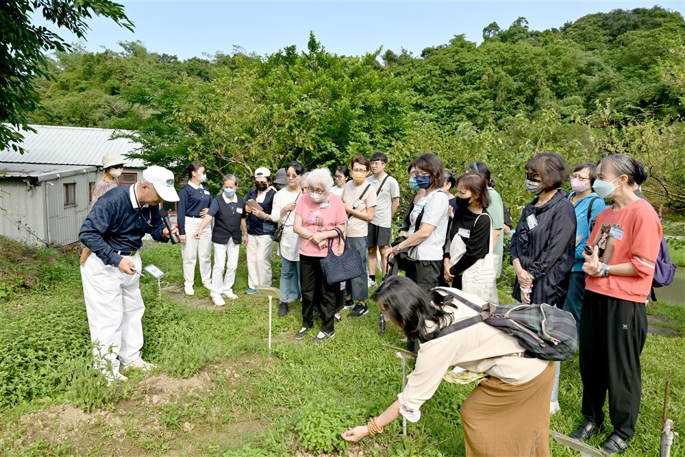 慈濟內湖園區志工們帶領台北慈院醫療團隊與遺族家屬參觀園區自然景觀,放鬆身心。