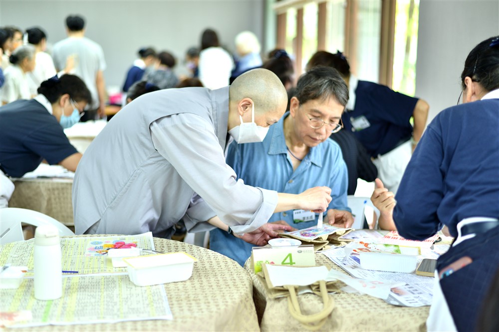 臨床宗教師釋純寬師父說,大家共聚參與活動,是一段共善的因緣,也是一種心靈共振的機會,接著純寬師父簡介蝶谷巴特DIY 製作,帶著大家動手完成獨一無二的作品,難得的忘憂時刻,也是難得歡聚時光。