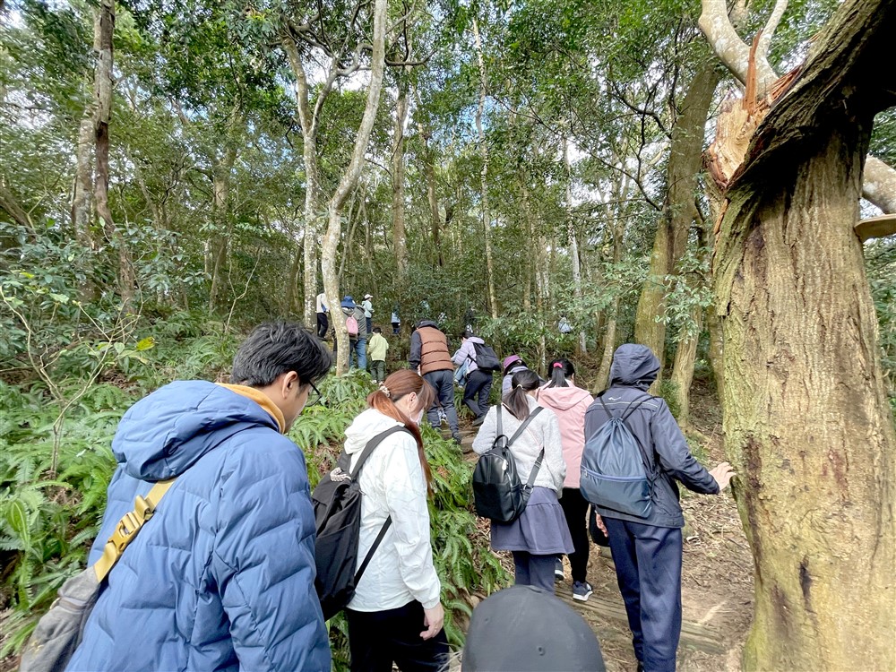 眾人沿著四月雪小徑拾級而上,前往三義茶園。