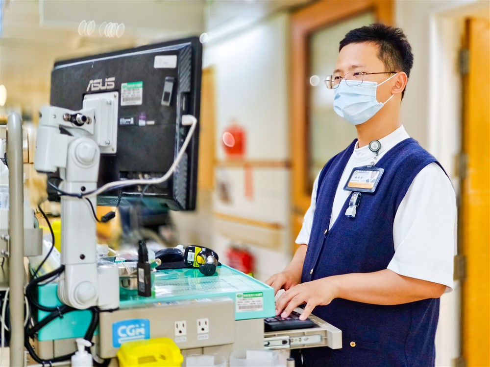右圖:魏靖倫護理師在大林慈院內科病房服務,不張揚自己休假救人義舉。