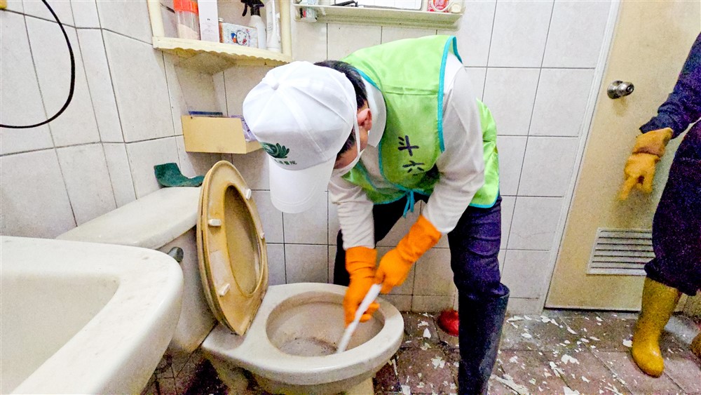斗六慈濟醫院慶祝七周年,醫療同仁與慈濟志工利用元旦假日,走入社區協助貧困家庭整理住家環境。