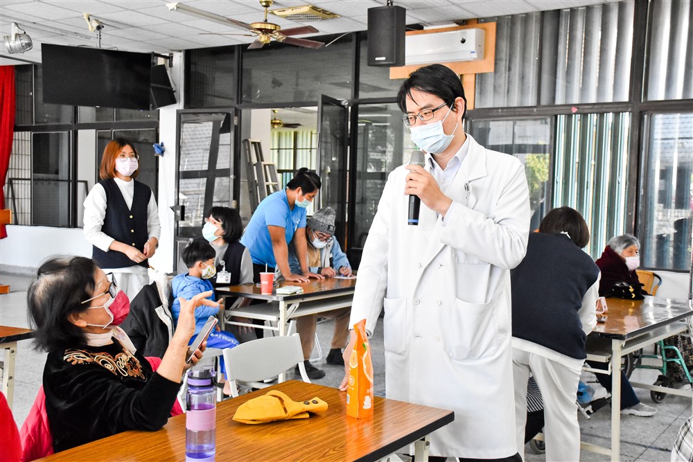 吳勝騰副院長來到關山巷弄長照站進行糖尿病預防的衛教說明。