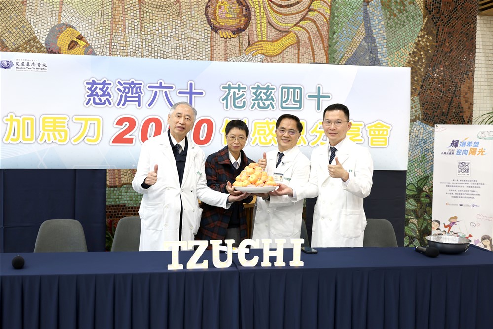 花蓮慈濟醫院自二○○三年引進東部首臺「加馬刀」立體定位放射手術儀器,至今已守護病人二十三年。二月十日,院方舉辦「慈濟六十‧ 花慈四十 加馬刀兩千例感恩分享會」,由花蓮慈院院長林欣榮、神經外科部主任蔡昇宗和神經腫瘤科主任蘇泉發等神經專家群與會,並邀請二十三年前的首位病友陳惠玲女士現身說法,分享這項「隔空取瘤」不流血術式,如何讓兩千個家庭從心碎重拾幸福。