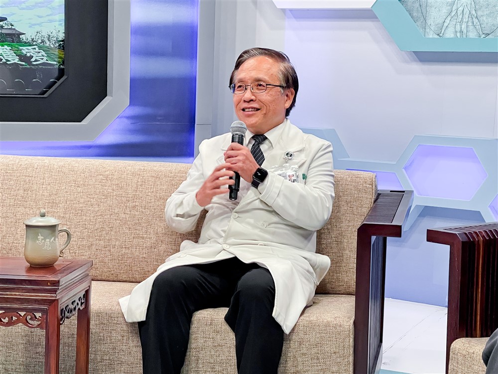 二○一四年,〈大愛醫生館〉簡守信院長榮獲金鐘獎最佳教育文化節目主持人獎。圖/台中慈院提供