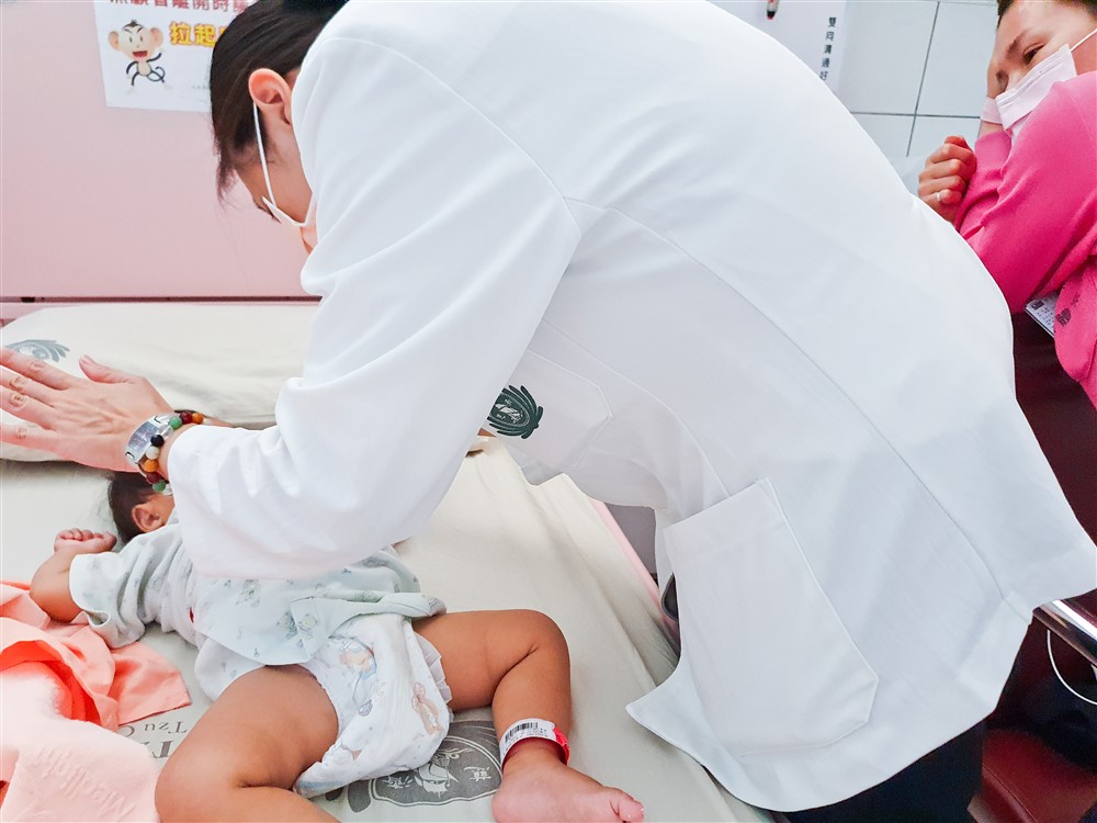 我在病房跟小希互動的過程中察覺他似乎有發展遲緩的情形,像是跟他玩捉迷藏遊戲,他的反應慢了幾拍,不會像一般嬰孩一樣四處轉頭找人,只是一臉吃驚怎麼眼前的人不見了,感覺他對於聲音及方向的刺激、反應也都特別慢,因此請兒童聯合評估中心協助。經中心的物理治療師及職能治療師評估後,確定小希有發展遲緩。