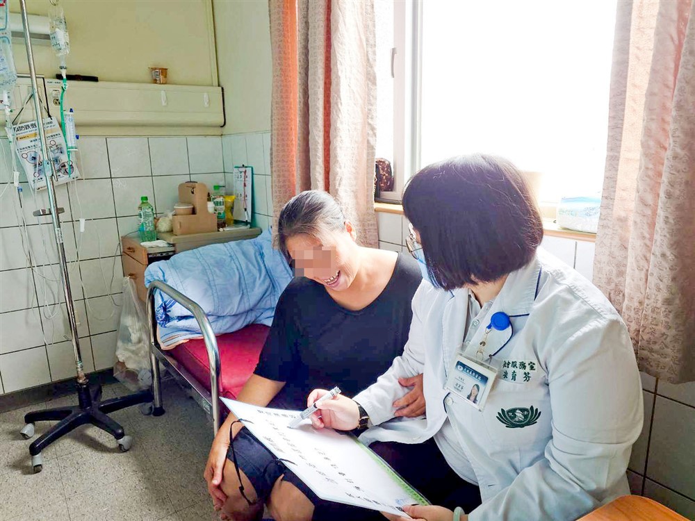 大林慈濟醫院社工師凃育芬透過與病人及家屬商談,釐清所需後給予所需協助。