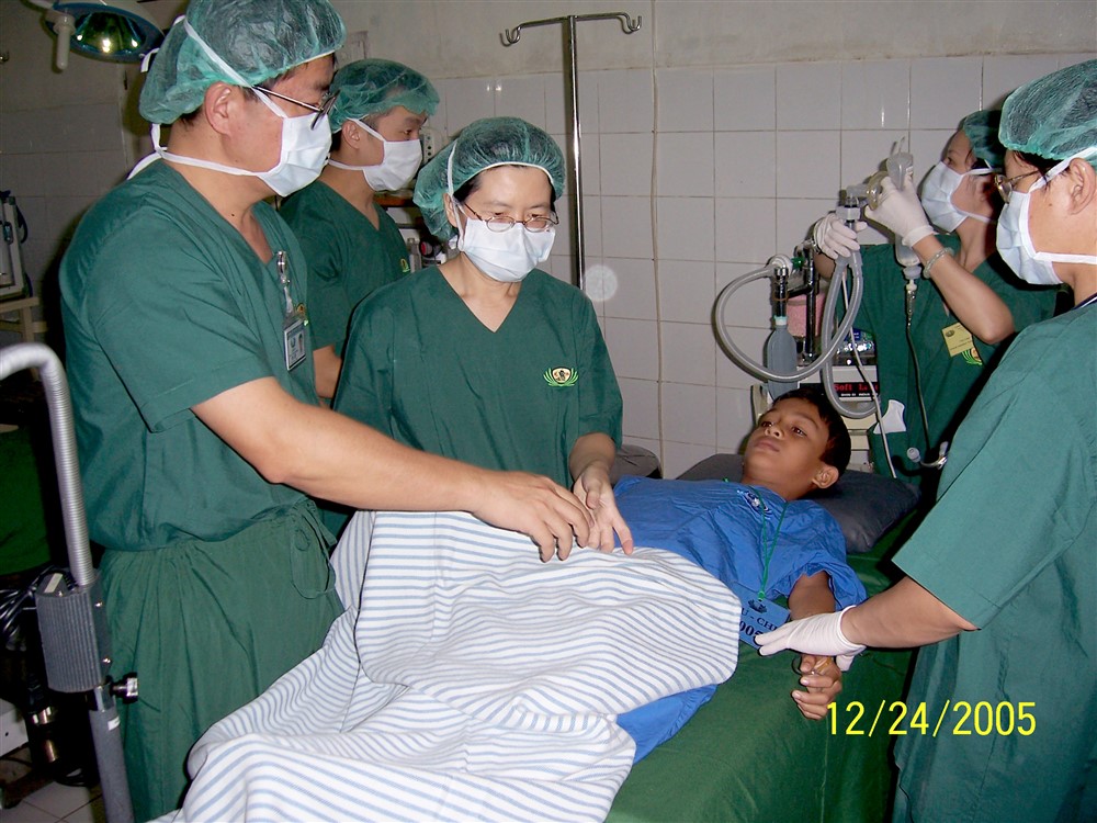 二○○五年南亞大海嘯重創印尼亞齊,陳宗鷹(左一)與慈濟人醫會前往賑災義診,一天內即進行高達一百檯手術的麻醉。