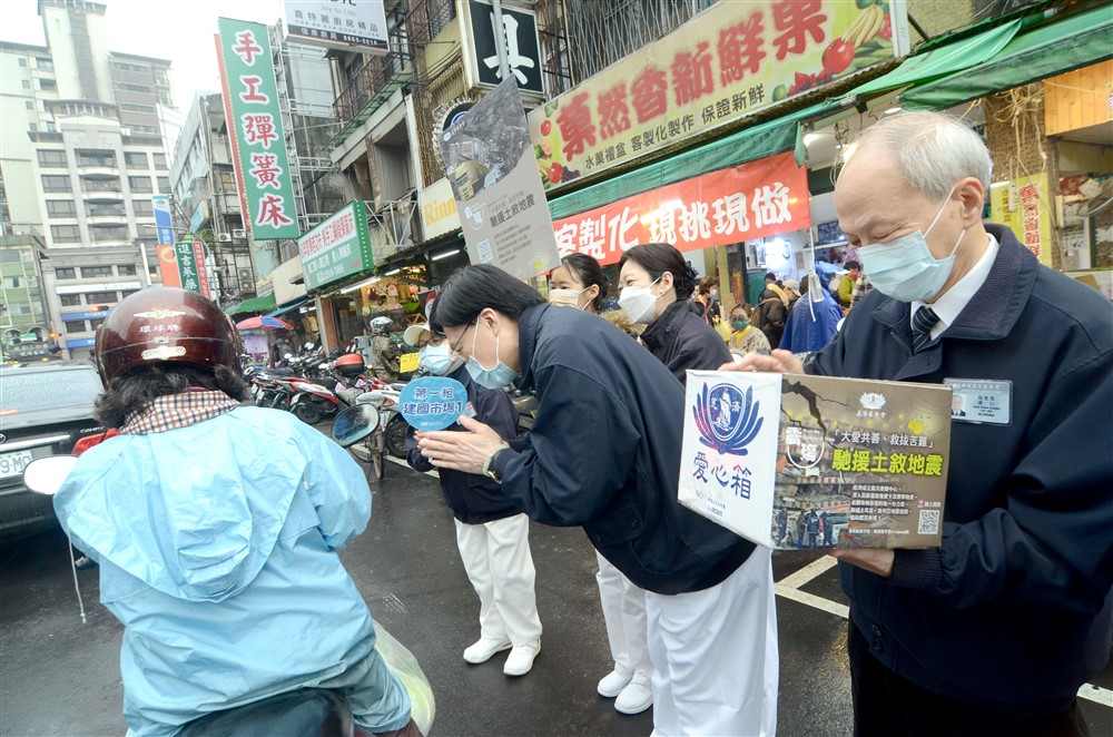 竹筒存愛祈福護蒼生、職志合一街頭勸募、醫護廟埕設攤義賣,慈濟醫療法人各院響應「大愛共善 救拔苦難──馳援土敘地震」募心募愛,齊助土耳其及敘利亞地震後災民重建家園……