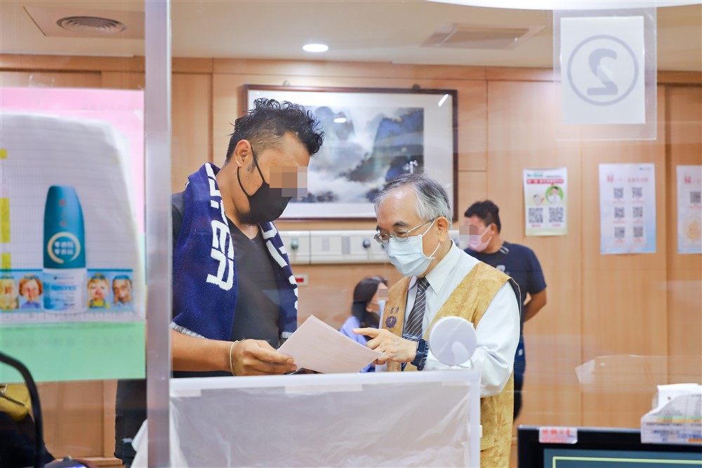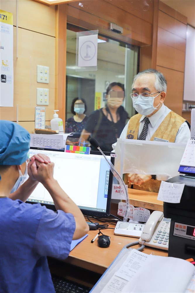 醫療志工游永春師兄親切為病人解說服務。攝影/李玉如