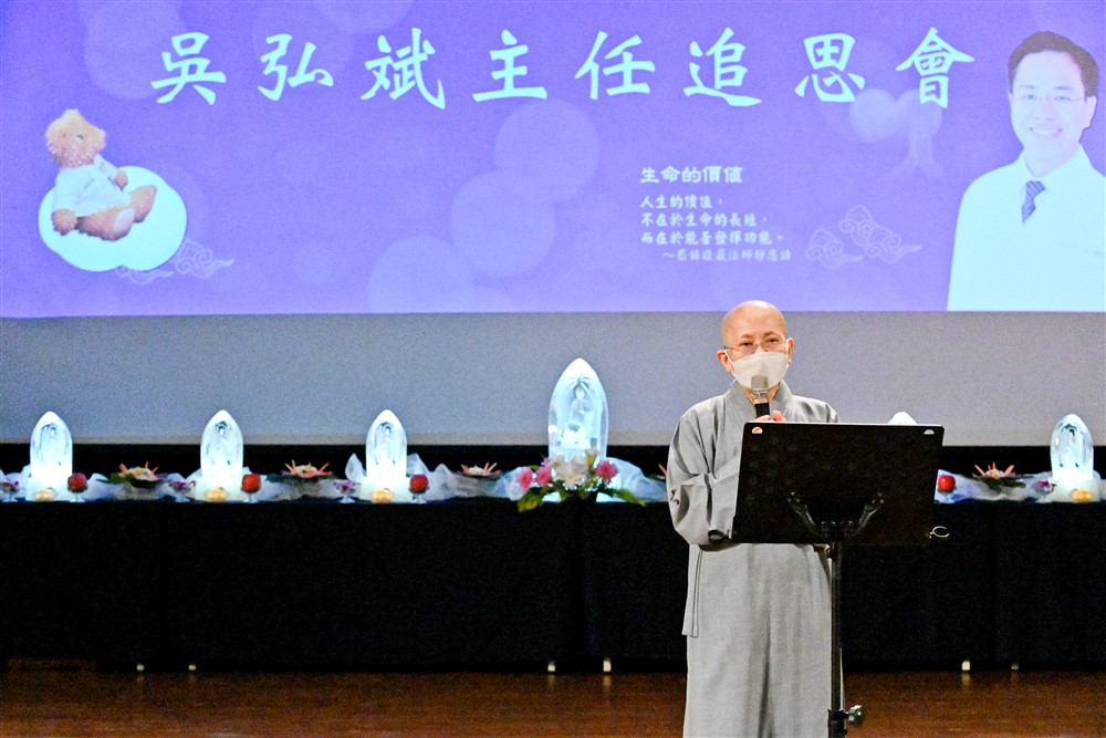 追思會主持人靜淇師姊說,吳主任英年早逝,我們雖有萬般不捨,但相信他一定有更重要的任務必須遠行,所以先向我們道別,即便有無比的心痛哀傷,仍要記得上人教導的歡喜送菩薩。