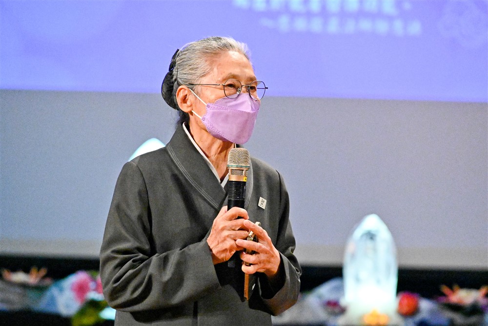 靜思精舍德懷師父恭讀上人「悲智仁德 典範長存」追思文。攝影/林昭雄