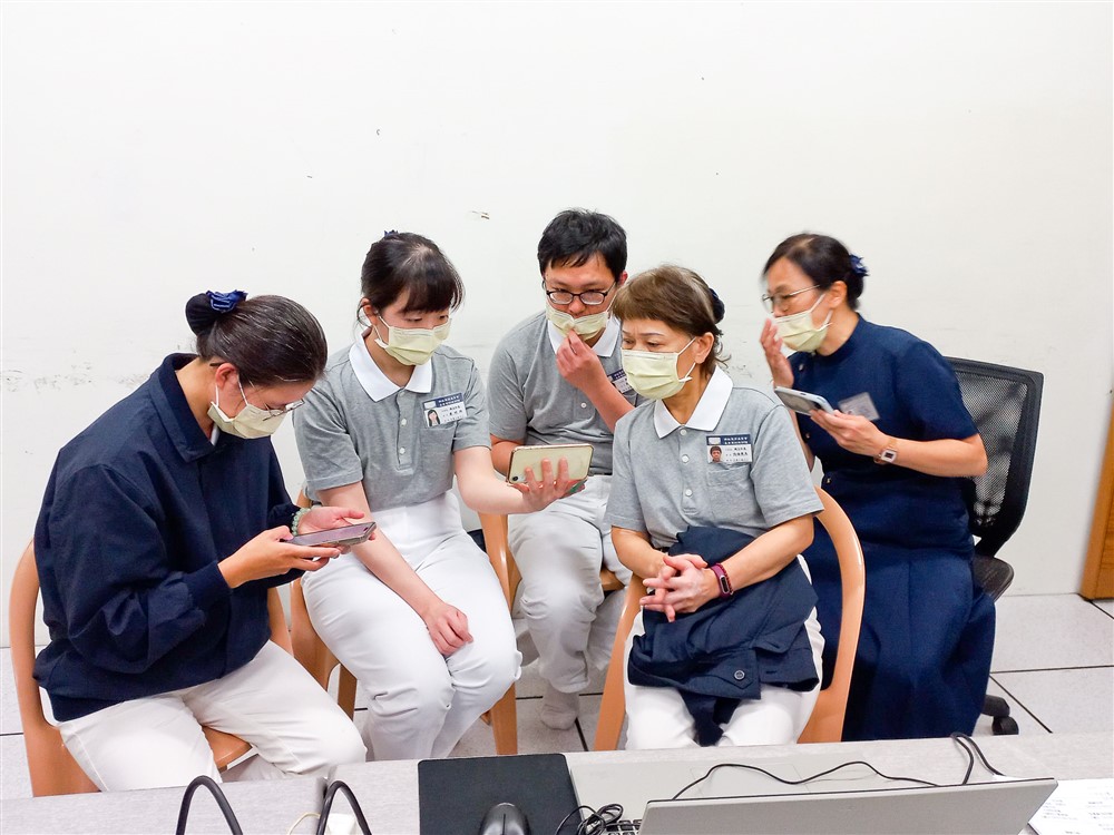 耳鼻喉部住院醫師康婷雅(左二)、林偉傑(左三)、技術員楊集美(右二)培訓回花蓮尋根,線上參與追思會。攝影/胡進忠
