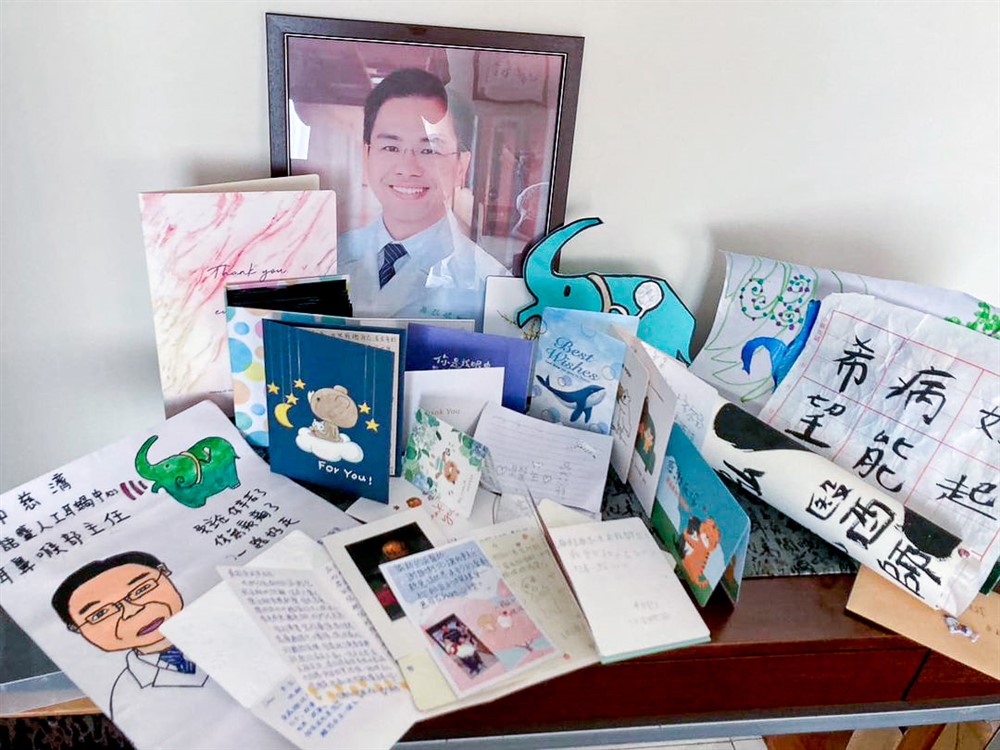 來自聽語中心孩子的祝福與追思,轉交給吳弘斌主任的太太。圖/台中慈院聽語暨人工耳蝸中心提供