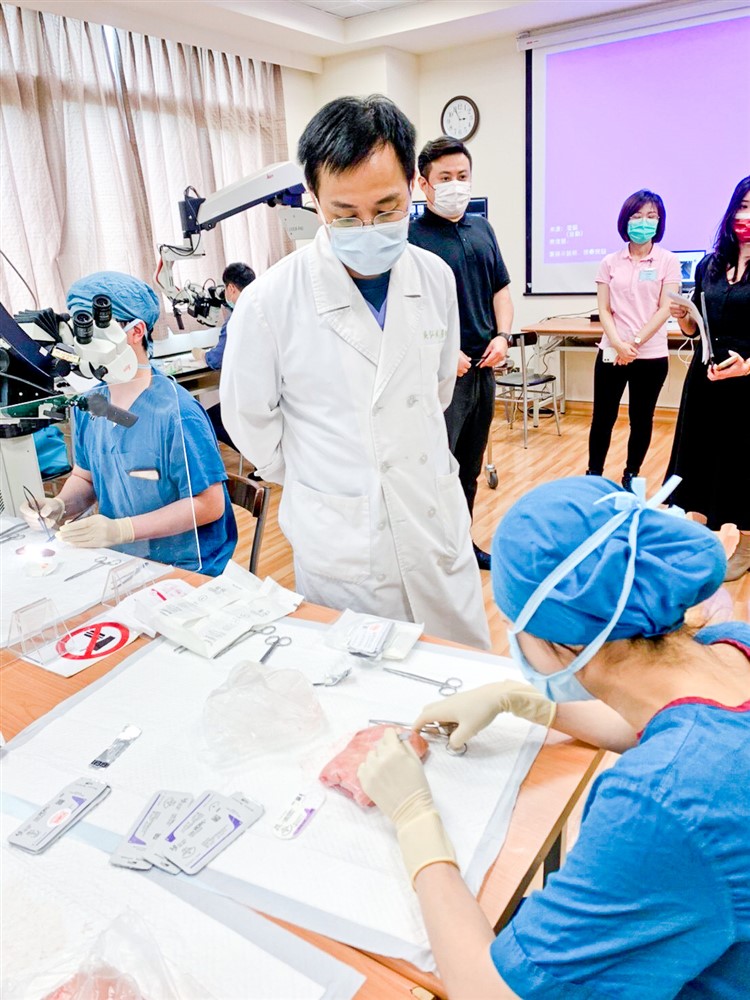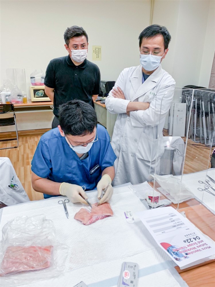 耳科醫學會參加慈濟模擬手術課程精進手術技能,中左為吳弘斌主任,中右為許權振副院長,要讓更多人「聽」得到。圖/謝承祐提供