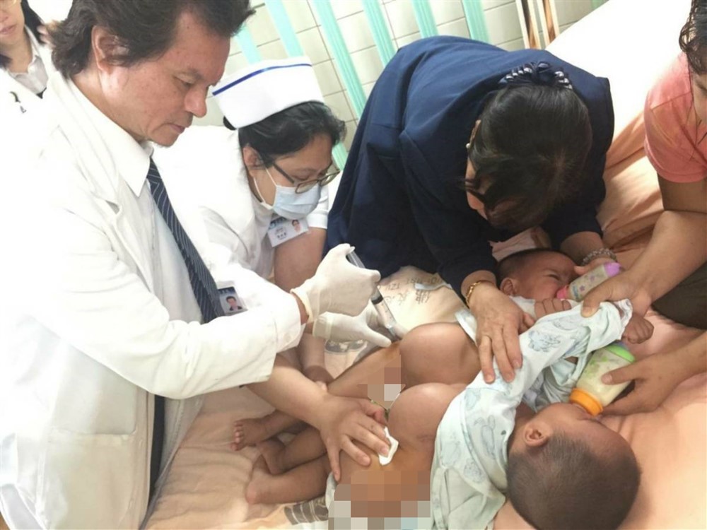 花蓮慈濟醫院整形外科李俊達主任,不僅為許多花東頭頸癌病人術後重建、開創了治療靜脈曲張的新術式;他更參與多項國際醫療個案在花蓮的跨科合作手術,包括多位顏面巨大腫瘤,以及連體嬰的分割等,圖為他為連體嬰正式分割手術前,施行養皮手術。圖/花蓮慈院提供