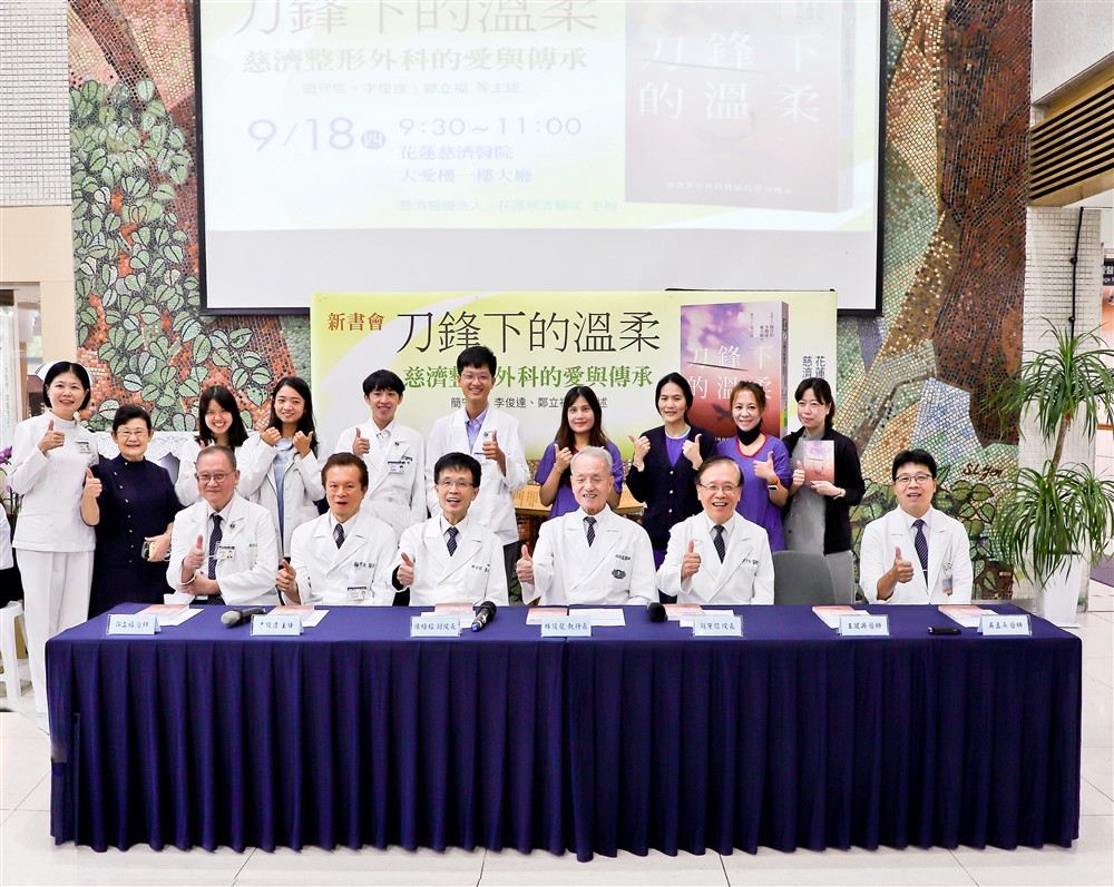 二○二五年九月十八日上午在花蓮慈濟醫院舉辦《刀鋒下的溫柔》新書會,一群整形外科醫師齊聚一堂,包括:台中慈濟醫院簡守信院長、花蓮慈濟醫院的李俊達、鄭立福、吳孟熹等醫師;病友黃秀政也特地前來分享道感恩。