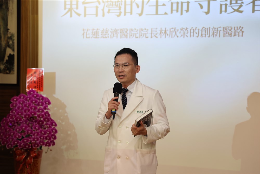 慈濟人文志業品牌長林天來致詞強調他此刻有三個主場,第一是三年多前他在天下文化社長退休前,是催生這本書的幕後推手;第二是他退休後的現在,以慈濟人文志業品牌長的角色推廣慈濟醫療特色;第三,他是土生土長的花蓮人,他感恩慈濟醫院守護花東,讓他的家人在就醫時獲得很好的醫療。