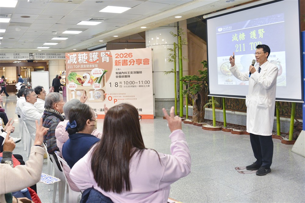 《減糖護腎211TOP 蔬食健康餐盤》一書由慈濟醫療法人人文傳播室策畫,靜思人文與原水文化合作出版。二○二六年一月八日上午,台北慈濟醫院舉辦《減糖護腎211TOP 蔬食健康餐盤》新書分享會,由腎臟內科王奕淳醫師與營養師團隊親自說明糖尿病腎臟病飲食重點與美味菜單,陪伴病人走出飲食迷思,吃出健康,也找回安心與希望。