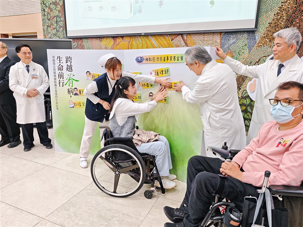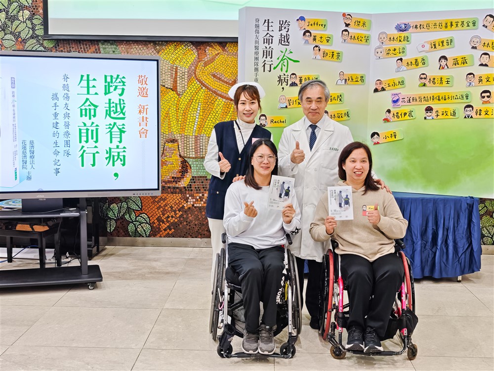 《跨越脊病,生命前行》書中收集了二十位脊髓損傷病友與醫療團隊並肩前行的感人故事。遠從高雄、臺中、桃園、臺北以及花東等十餘位脊損傷友特地前來參與新書分享會,他們也是花蓮慈濟醫院及慈濟醫療體系長年治療陪伴、攜手重建人生的傷友。