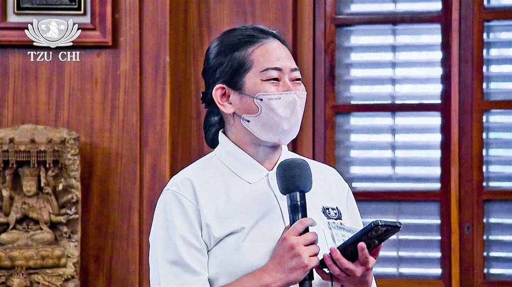 來自馬來西亞吉打洗腎中心的印度裔護理師,二十三歲的蒂婉心妮,首次參加人醫年會,與上人分享她閱讀《靜思語》後在生活中的體悟;過去在護理工作中,一出現壓力或挑戰時她會直接做出情緒反應,但透過上人的教誨,她學會在回應之前先安靜思考,「我體會到,一顆平靜的心能夠帶來清晰的思考,而以慈悲去理解他人,遠比情緒化的反應更有力量。」