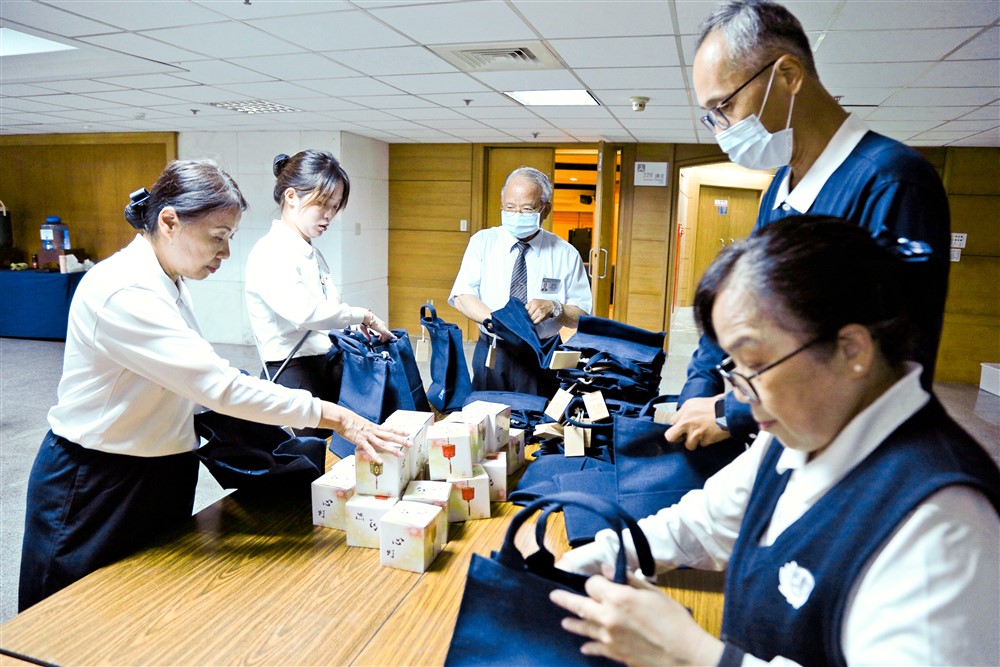 台北慈濟醫院的工作人員整理結緣品。攝影/孫保源